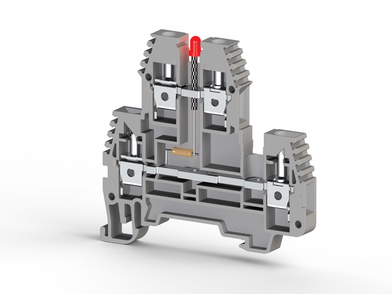 309 379, Клеммник 2-х ярусный, 4 мм.кв., с индикацией 48 VDC, (серый), PIK4 NLD 48VDC/NM Серия V0 | код 0.0.0.3.09379 | KLEMSAN
