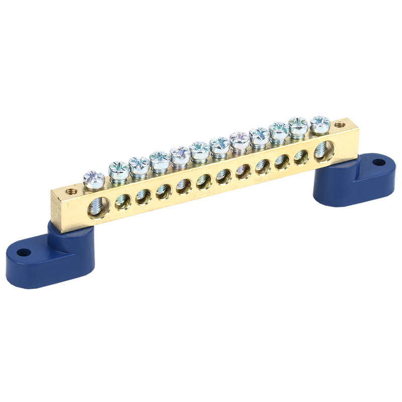 Шина N нулевая 8х12 мм на двух угловых синих изоляторах 12 групп REXANT | код 11-2335 | REXANT